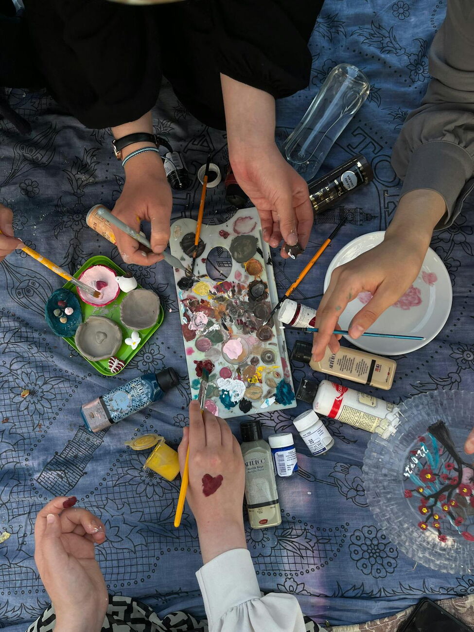 Wenn Kinder dabei sind: Farbtöpfe etwas weiter nach hinten, damit nicht alles im Armradius steht.